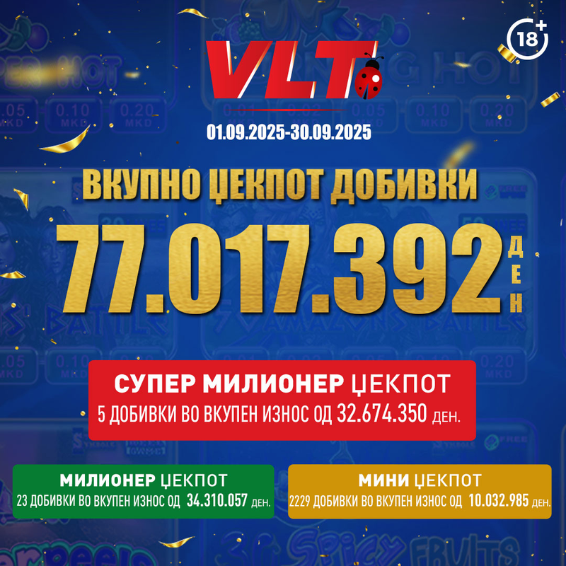 ПОВЕЌЕ ОД 12 И ПОЛ МИЛИОН ЕВРА, ВИДЕОЛОТАРИЈА ИМ ИСПЛАТИ НА ИГРАЧИТЕ НА ВЛТ ВО 2024